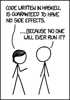 Time for coder joke I actually knew someone who code in Haskell. From xkcd. Share this:Tweet Click to email a link to a friend (Opens in new window) Email MoreShare on Tumblr Click to share on Reddit (Opens in new window) Reddit PocketLike Loading... Posted on 4 Jan 2014 by Perry Ismangil